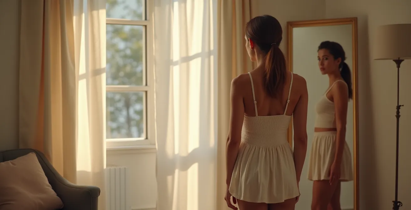 L’une des erreurs les plus fréquentes est de choisir un tour de dos trop grand et un bonnet trop petit. C’est une combinaison désastreuse pour la silhouette, surtout visible sous un vêtement ajusté. Un bonnet trop petit ne contient pas l’intégralité du sein. Le volume « s’échappe » sur les côtés ou sur le dessus, créant le fameux effet « double poitrine » ou des bourrelets disgracieux sous les aisselles. Visuellement, cela élargit la carrure et donne une impression de tassement.